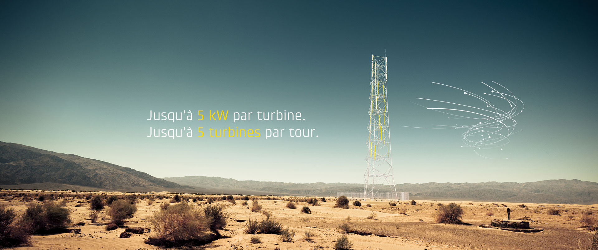 Nous avons développé un pylône multi-opérateurs innovant, spécifiquement conçu pour intégrer des éoliennes à axe vertical, dont le dimensionnement répond aux besoins spécifiques des opérateurs.